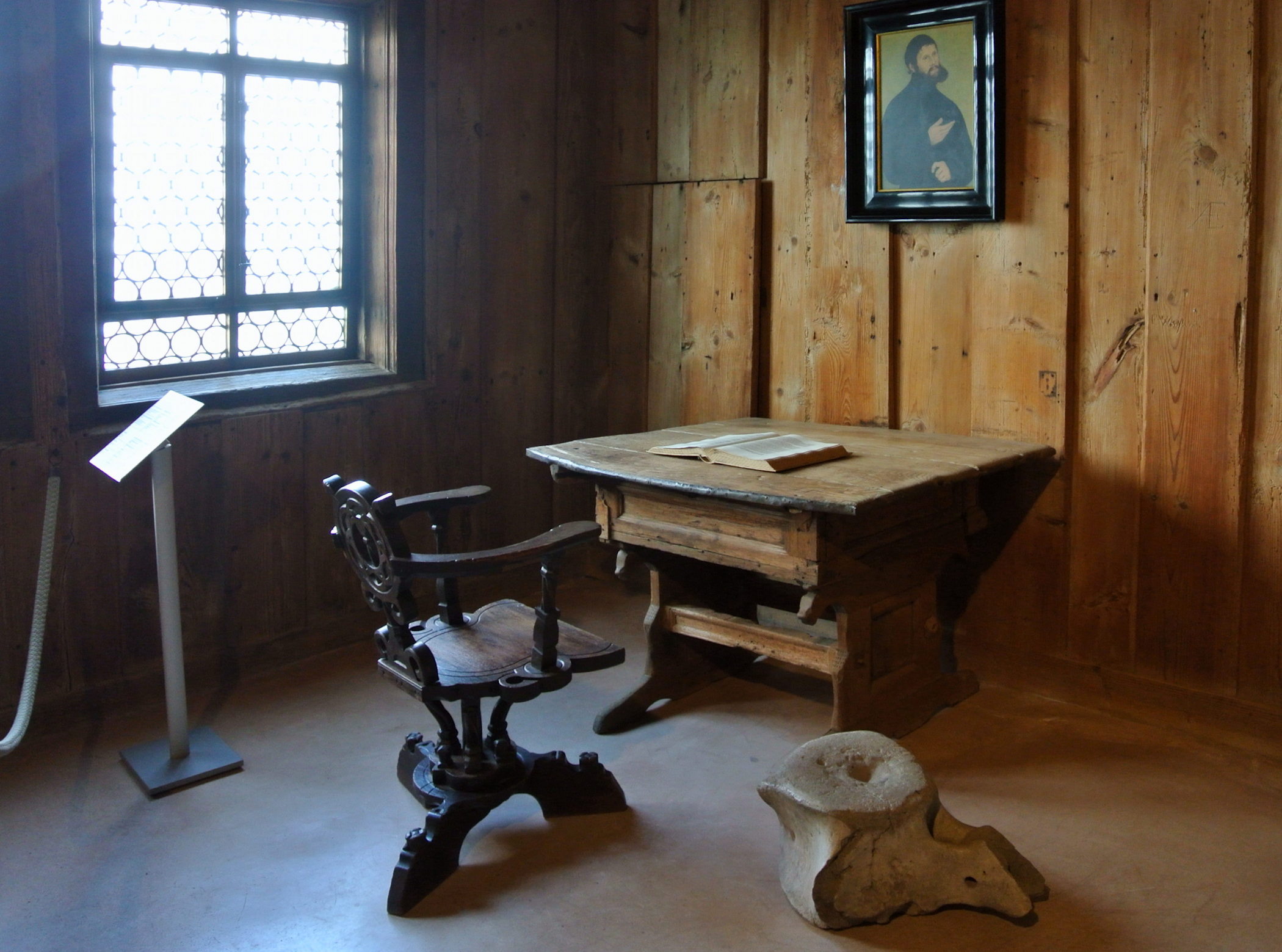 Martin Luther spent quite a bit of time in Eisenach, and after the Catholic church rejected his proposal for change and excommunicated him in 1521, he fled here. This is the room where he spent most of his time, working on a German translation of the Bible. The whale vertebra is original to his time here.