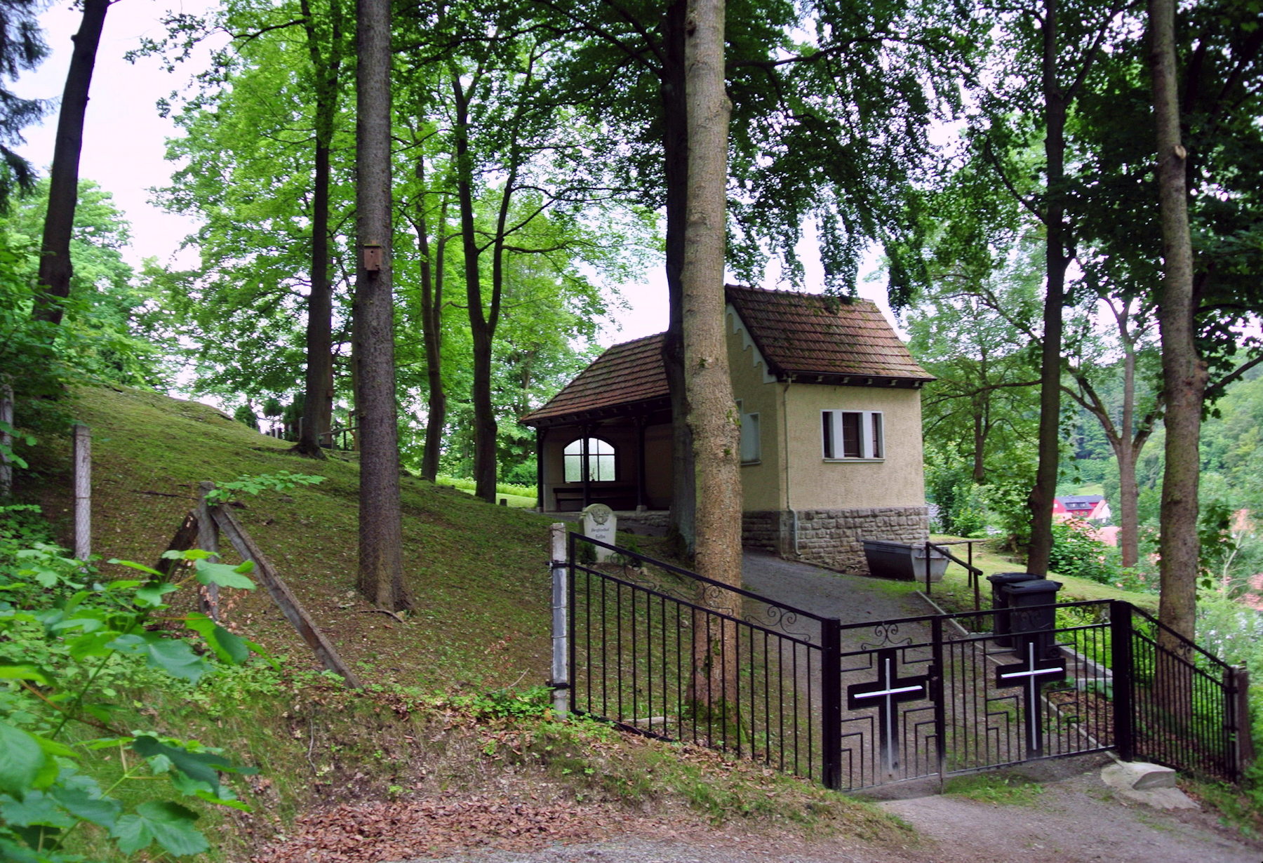 The Helba cemetary dates to 1696, and is located on a wooded hillside overlooking the town. There is a chapel with an enclosed room to store the casket, and a larger room with one side completely open for holding funerals.