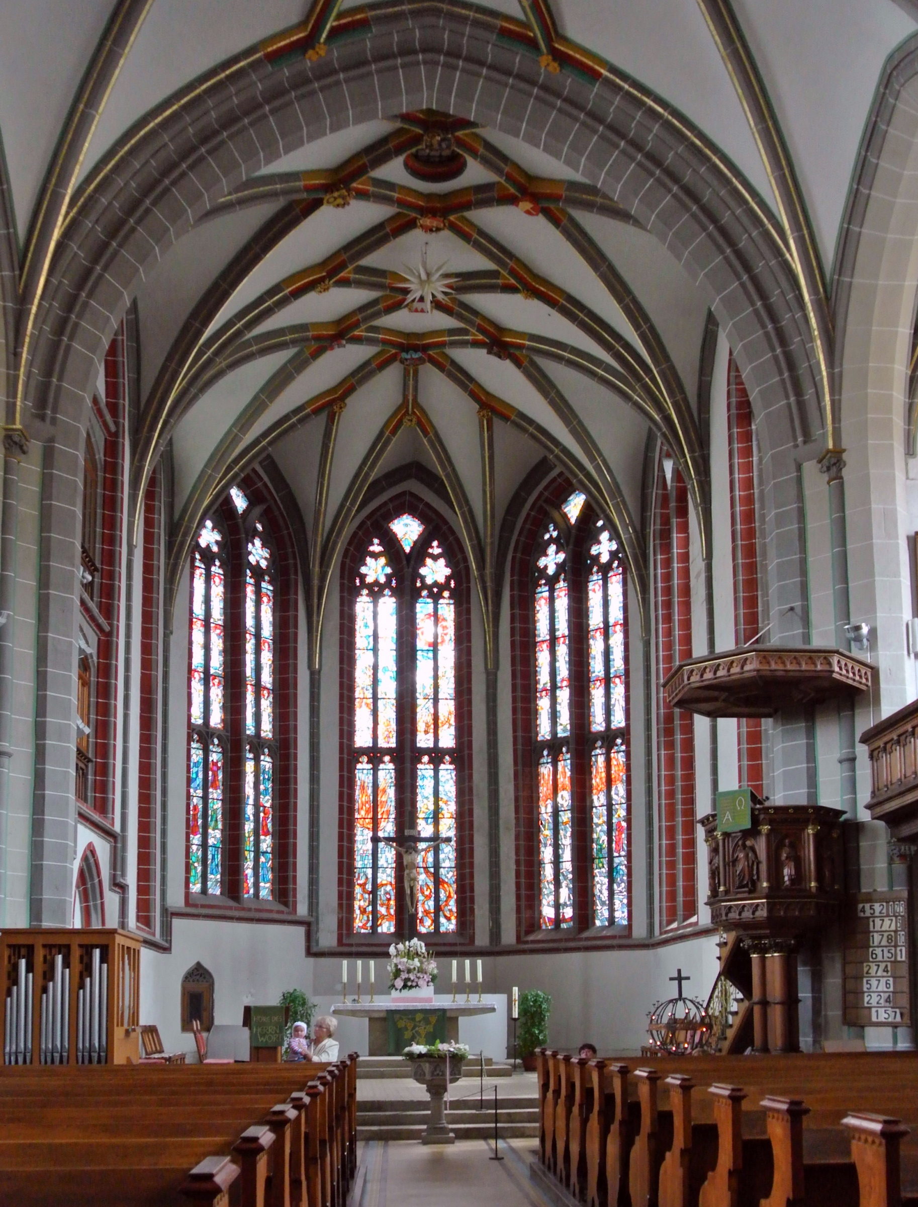 If I read it right, the choir loft was built in 1443. Johann Brahms performed on this pipe organ, which is fairly new (1889). The organ was damaged in WWII, and refurbished in the 1990's.