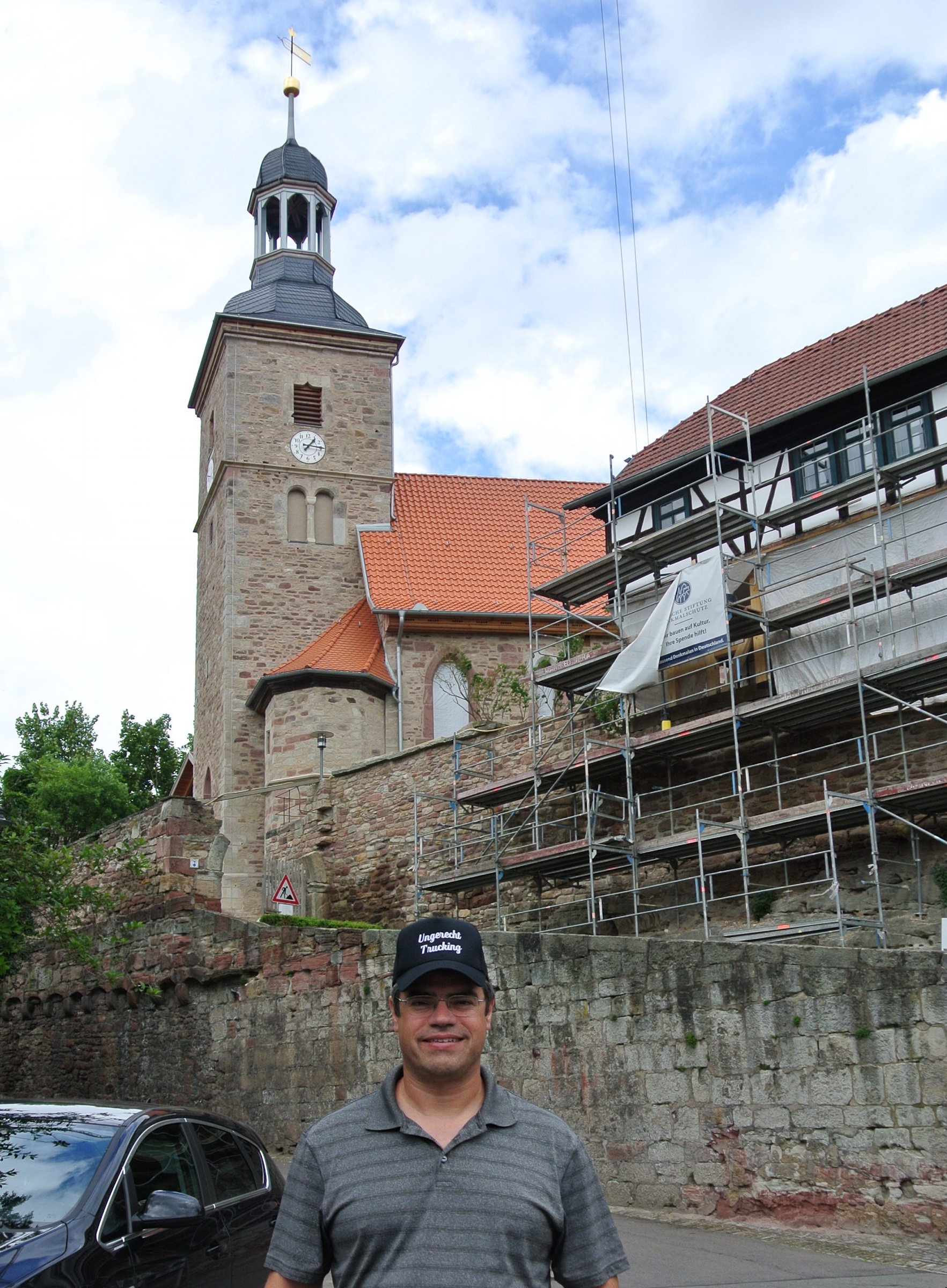 Walldorf Church A picture of me with my "Ungerecht Trucking" hat in front of the Walldorf Church. This is the oldest known location that our Ungerechts would have visited. They lived in Walldorf until the late 1600's, records before the 1600's were lost (probably because of the 1634 fire during the 30 Years War). This church was first mentioned in documents in 982 AD.