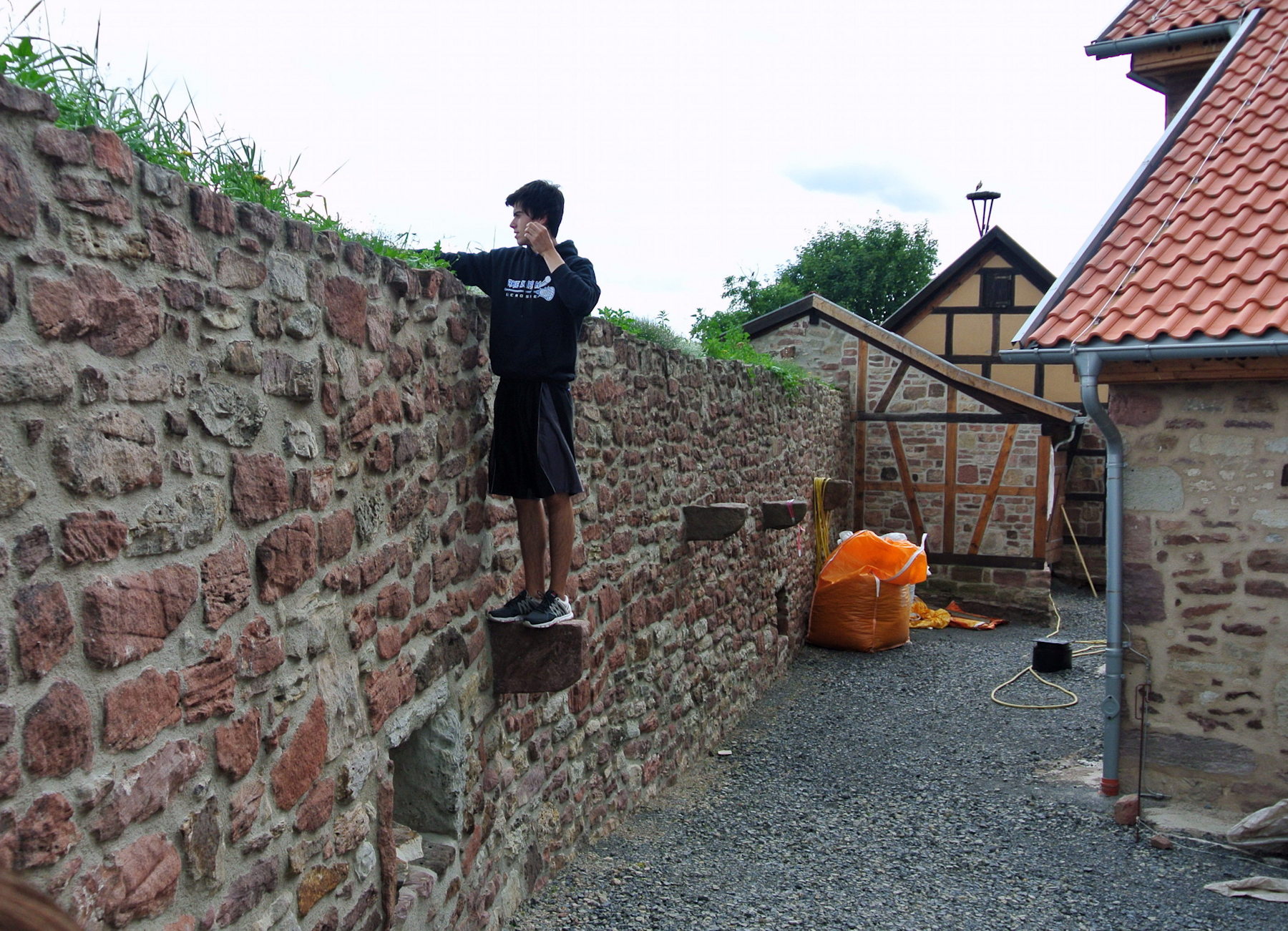 Philip emulating the archers that would have defended the church from these walls (originally there would have been a catwalk built along the stone supports, one of which he is standing on). The walls were built in 1008 AD, if I read the history correctly. But they weren't enough to defend against all the troubles of the 30 Year War. Armies from the Holy Roman Empire from the south and newer Protestant forces from the north roamed the countryside, and they were both expected to feed and fund themselves by pillaging the villages.